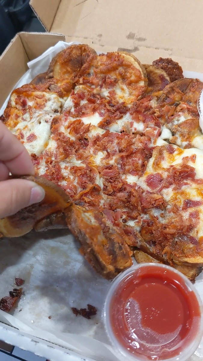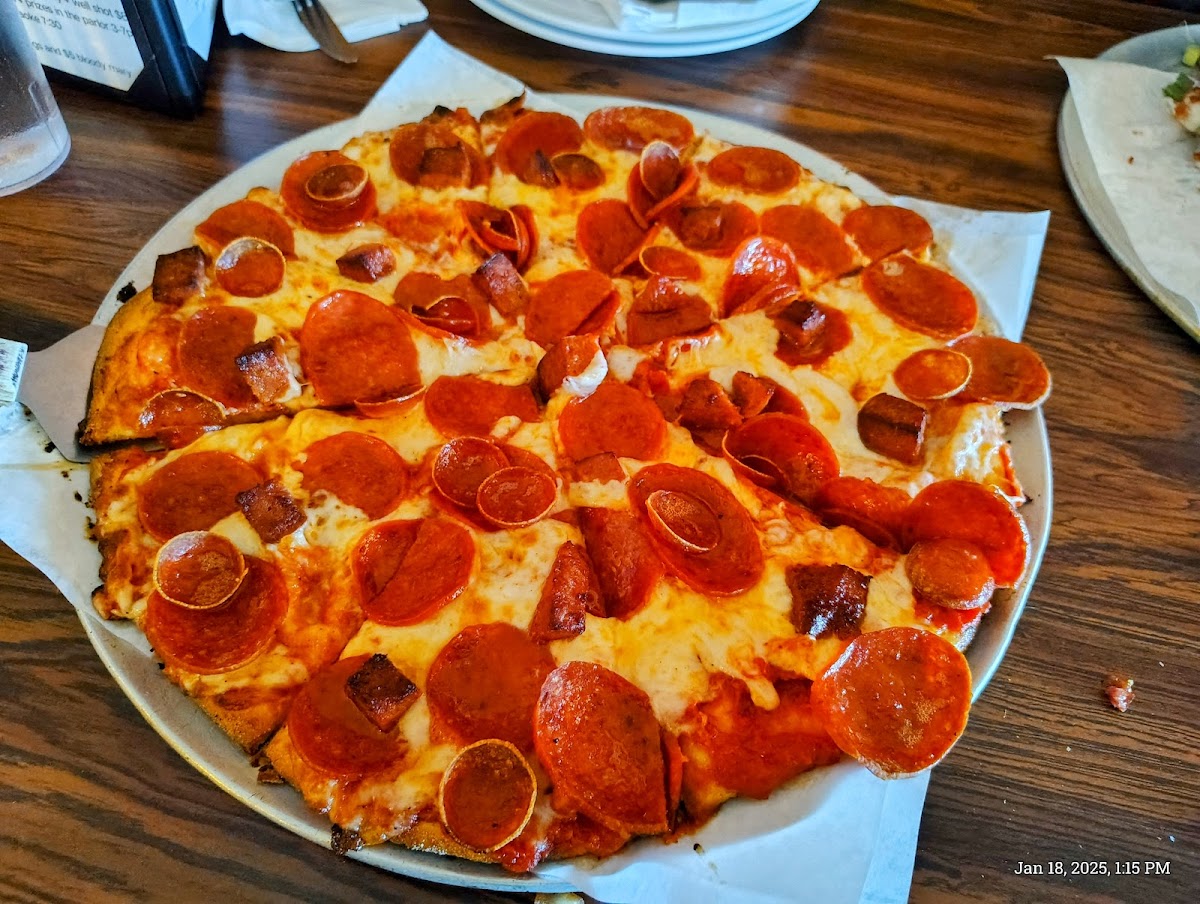 The menu leans heavily into homestyle options that balance casual dining with substantial portions. Beyond their pizzas—known locally for that Midwest Chicago-style crust and topping combination—they also offer a selection of sandwiches, appetizers like garlic cheesy breadsticks, and classic entrees such as fish and chips or spaghetti with meat sauce. These dishes are straightforward and satisfying, serving well for relaxed lunches or laid-back weekend dinners where the company and comfort food matter more than fancy plating.